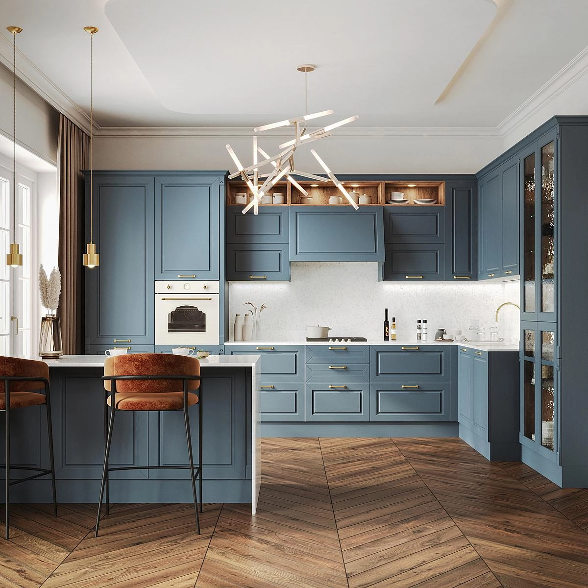 Современное прочтение классики: изысканные фасады с утонченной фрезеровкой, продуманная эргономика и технологичный комфорт. Подходит для неоклассики, классических интерьеров и ар-деко
