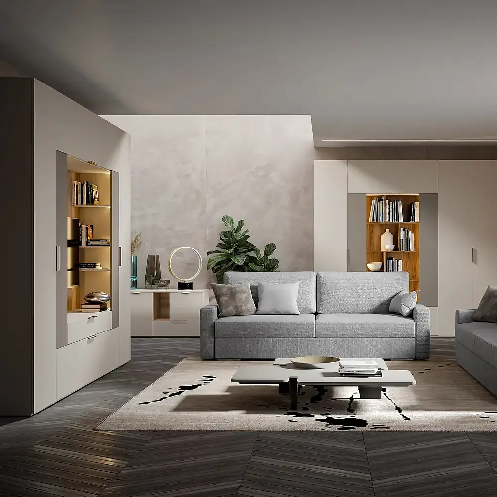 Современная модульная коллекция с лаконичным дизайном и мягкой цветовой палитрой. Практичные решения, удобная компоновка и универсальный стиль позволяют создавать комфортные интерьеры для всей семьи по разумной цене.